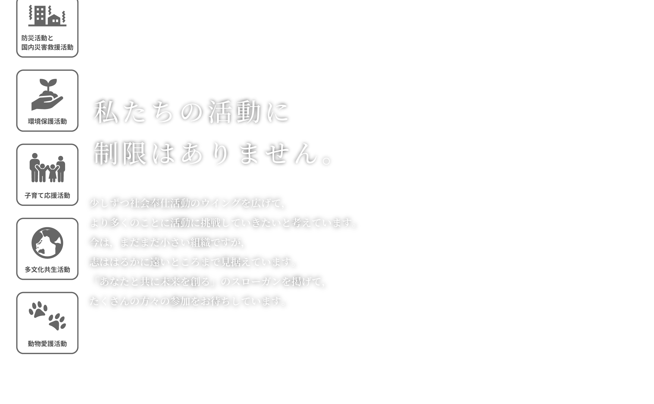 この団体は,あらゆる社会奉仕活動に関わる活動をしていきます。